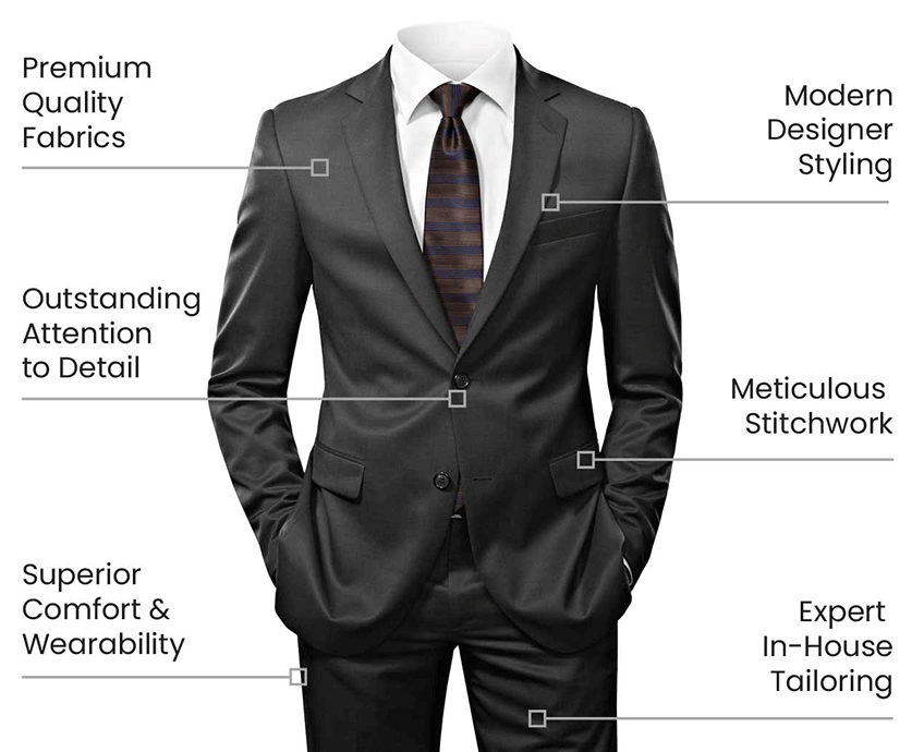 Designer Looks, Premium Fabrics and Superior Craftsmanship at Suits 20/20 Prices.